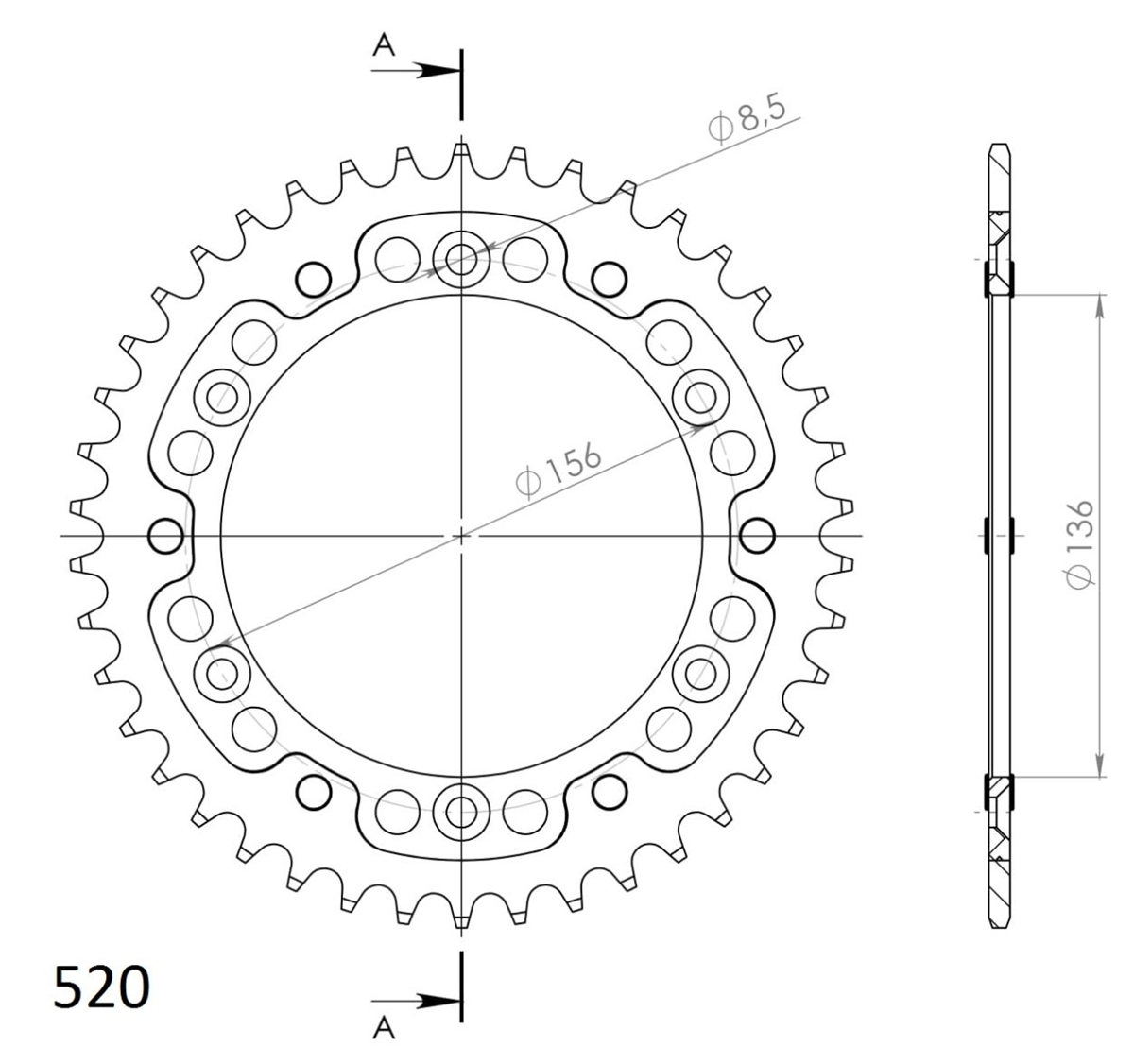 Środek zębatki wykonany jest z lekkiego i wytrzymałego aluminum lotniczego, natomiast korona zębów wykonana jest z niklowanej stali węglowej.