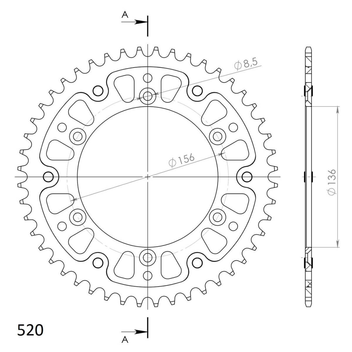 Środek zębatki wykonany jest z lekkiego i wytrzymałego aluminum lotniczego, natomiast korona zębów wykonana jest z niklowanej stali węglowej.