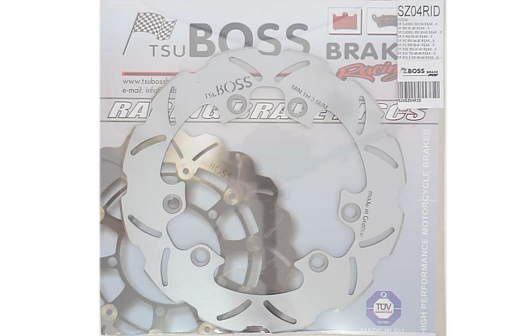 TSU BOSS BRAKE RACING została założona w 2000 roku w Grecji. Firma od początku swojej działalności zajmuje się produkcją części zamiennych do motocyklowych układów hamulcowych - klocków i tarcz hamulcowych. Produkty TSU BOSS BRAKE RACING posiadają certyfikat TÜV. O jakości produktów niech świadczy fakt, że TSU BOSS BRAKE RACING produkuje klocki oraz tarcze hamulcowe dla takich marek jak GALFER oraz BRAKING. Firma TSU BOSS BRAKE RACING posiada swoje przedstawicielstwa w ponad 30 krajach, m.in. w Anglii, Irlandii, Holandii, Belgii, Niemczech, Francji.