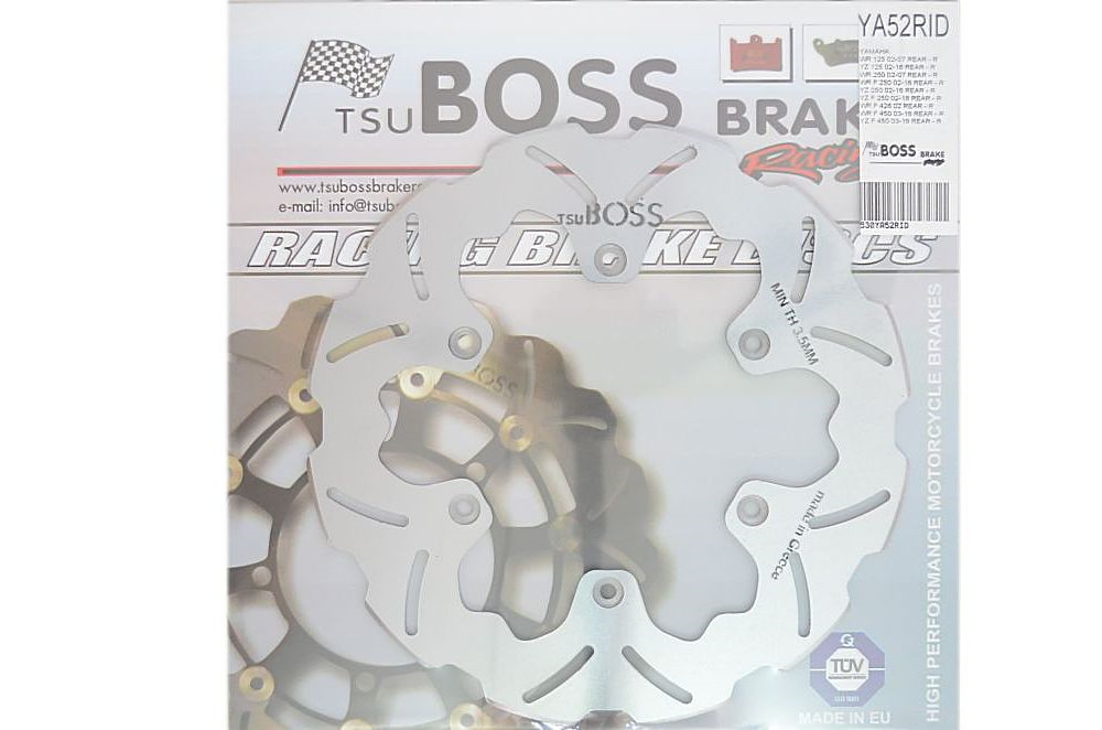 TSU BOSS BRAKE RACING została założona w 2000 roku w Grecji. Firma od początku swojej działalności zajmuje się produkcją części zamiennych do motocyklowych układów hamulcowych - klocków i tarcz hamulcowych. Produkty TSU BOSS BRAKE RACING posiadają certyfikat TÜV. O jakości produktów niech świadczy fakt, że TSU BOSS BRAKE RACING produkuje klocki oraz tarcze hamulcowe dla takich marek jak GALFER oraz BRAKING. Firma TSU BOSS BRAKE RACING posiada swoje przedstawicielstwa w ponad 30 krajach, m.in. w Anglii, Irlandii, Holandii, Belgii, Niemczech, Francji.
