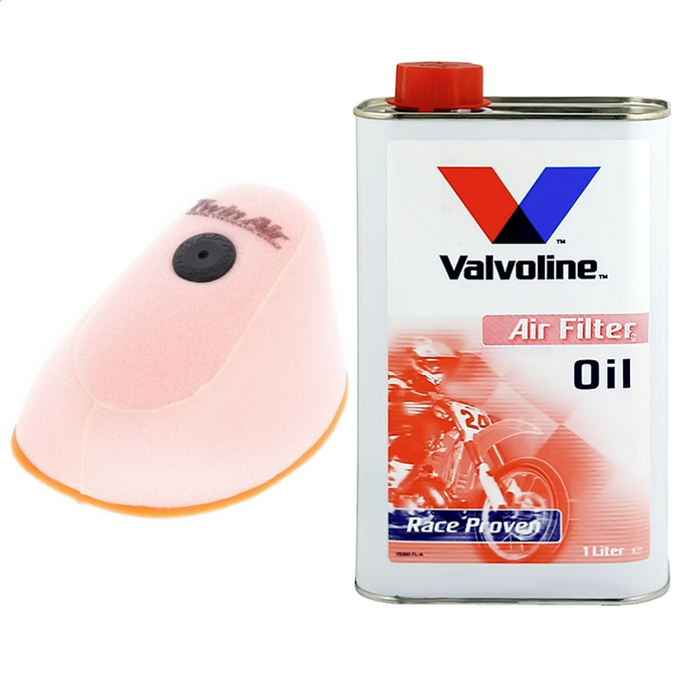 VALVOLINE AIR FILTER OIL 1 LITR Doskonały olej do nasączania gąbkowych filtrów powietrza w motocyklach cross, enduro, przewyższający jakością inne produkty tego typu. + Filtr powietrza TWIN AIR