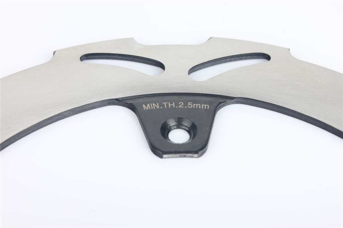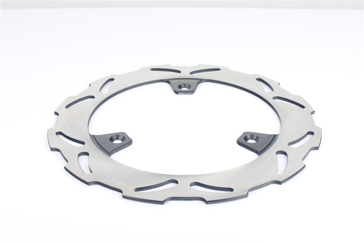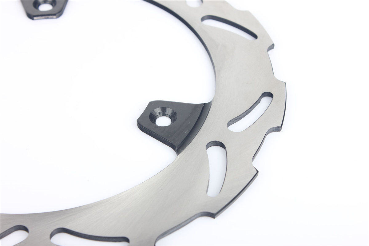 Materiał tarczy to stal nierdzewna 420 (2Cr13) o doskonałej odporności na korozję i zmienne temperatury jakim poddawane są tarcze hamulcowe. Wykonana przy użyciu technologii CNC. Tarcza posiada wyprofilowane wycięcia redukujące masę, ułatwiają także chłodzenie tarczy i oczyszczanie klocków hamulcowych. Tarcze posiadają certyfikat: ISO9001:2008.