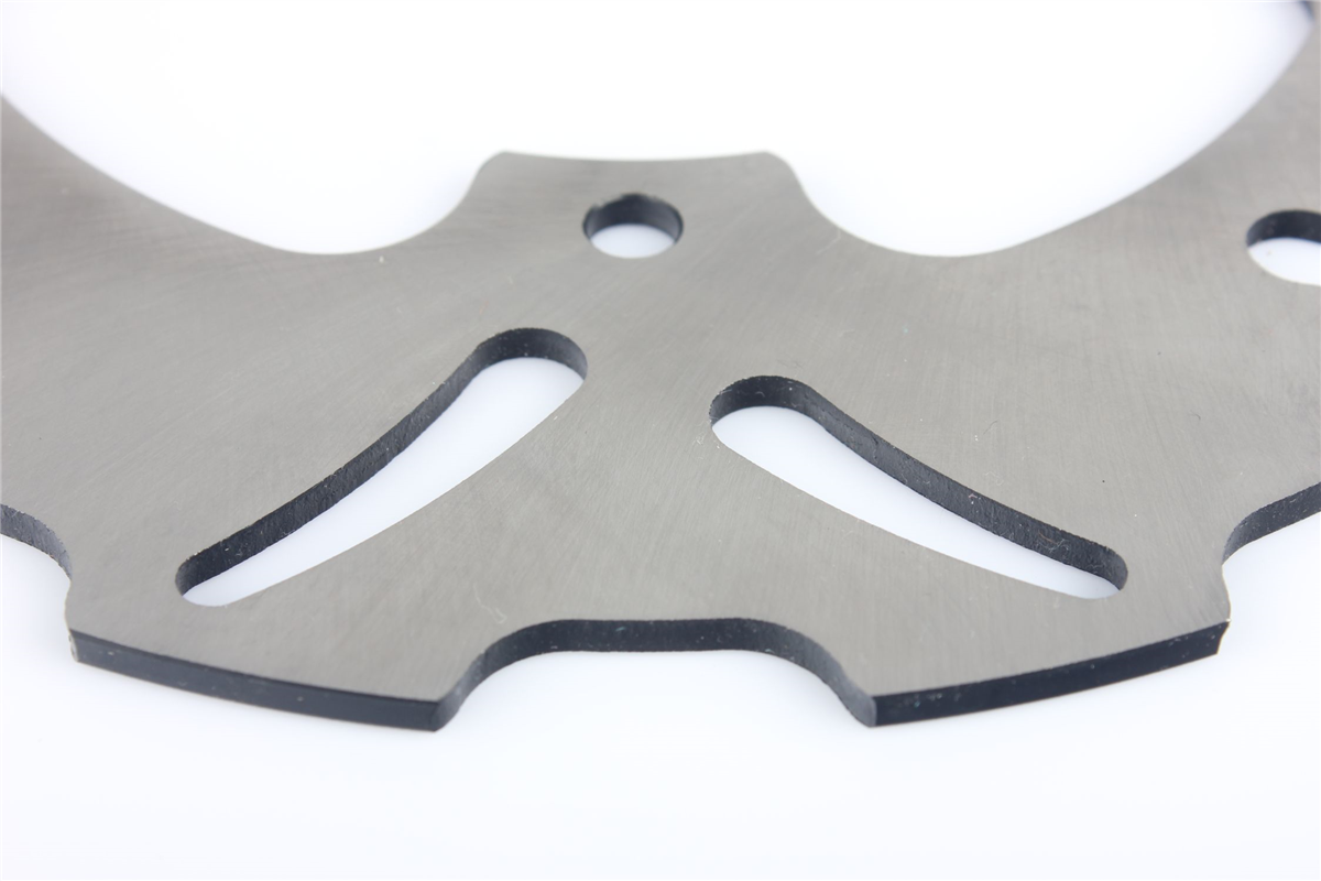 Materiał tarczy to stal nierdzewna 420 (2Cr13) o doskonałej odporności na korozję i zmienne temperatury jakim poddawane są tarcze hamulcowe. Wykonana przy użyciu technologii CNC. Tarcza posiada wyprofilowane wycięcia redukujące masę, ułatwiają także chłodzenie tarczy i oczyszczanie klocków hamulcowych. Tarcze posiadają certyfikat: ISO9001:2008.