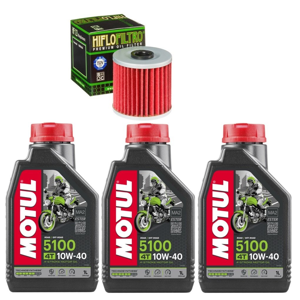 olej: MOTUL 5100 4T 10W40 3 x 1 litr