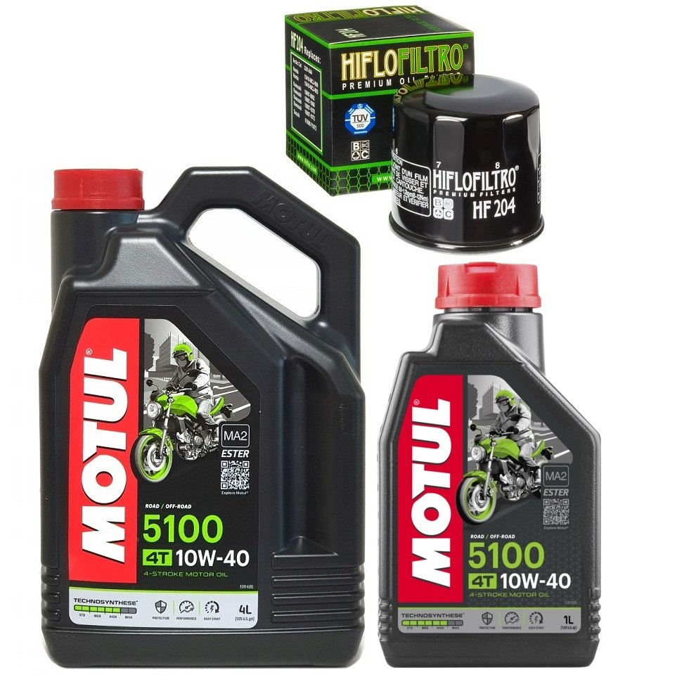 olej: MOTUL 5100 4T 10W40 4 litry + 1 litr